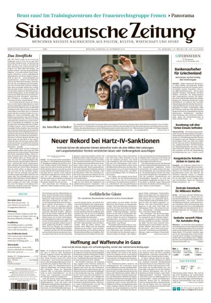 Titelseite „Süddeutsche Zeitung“ vom 20. November 2012